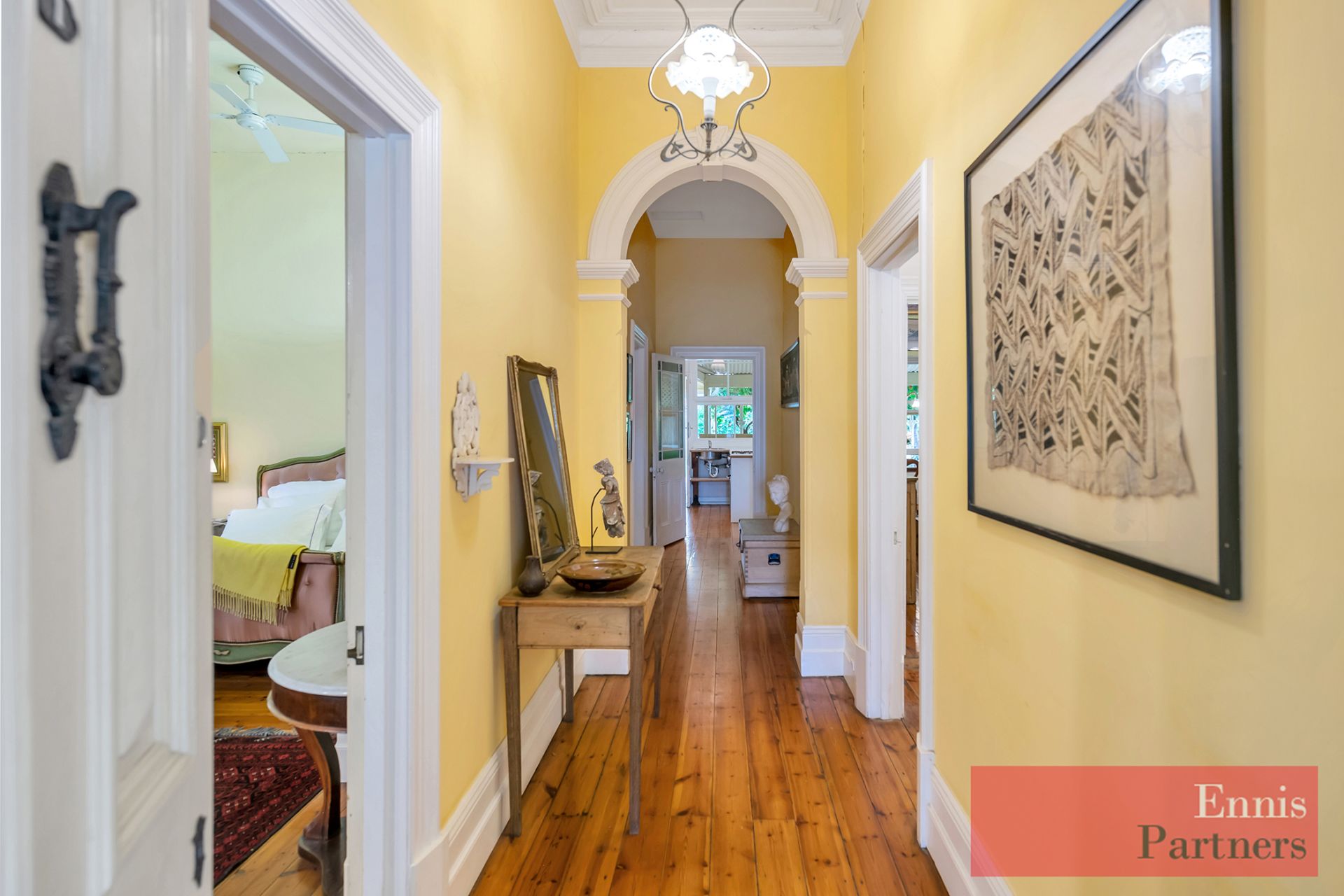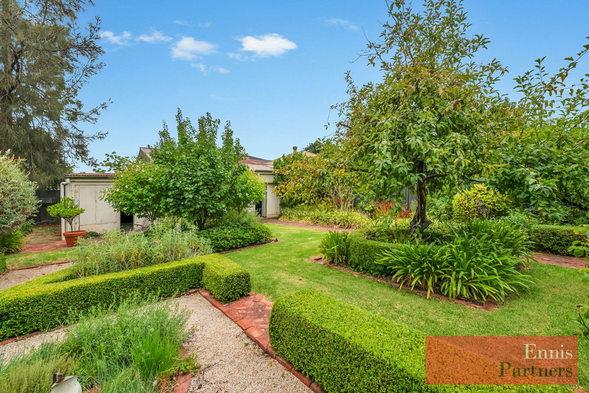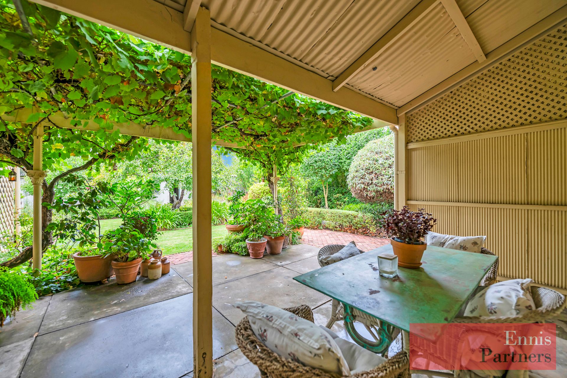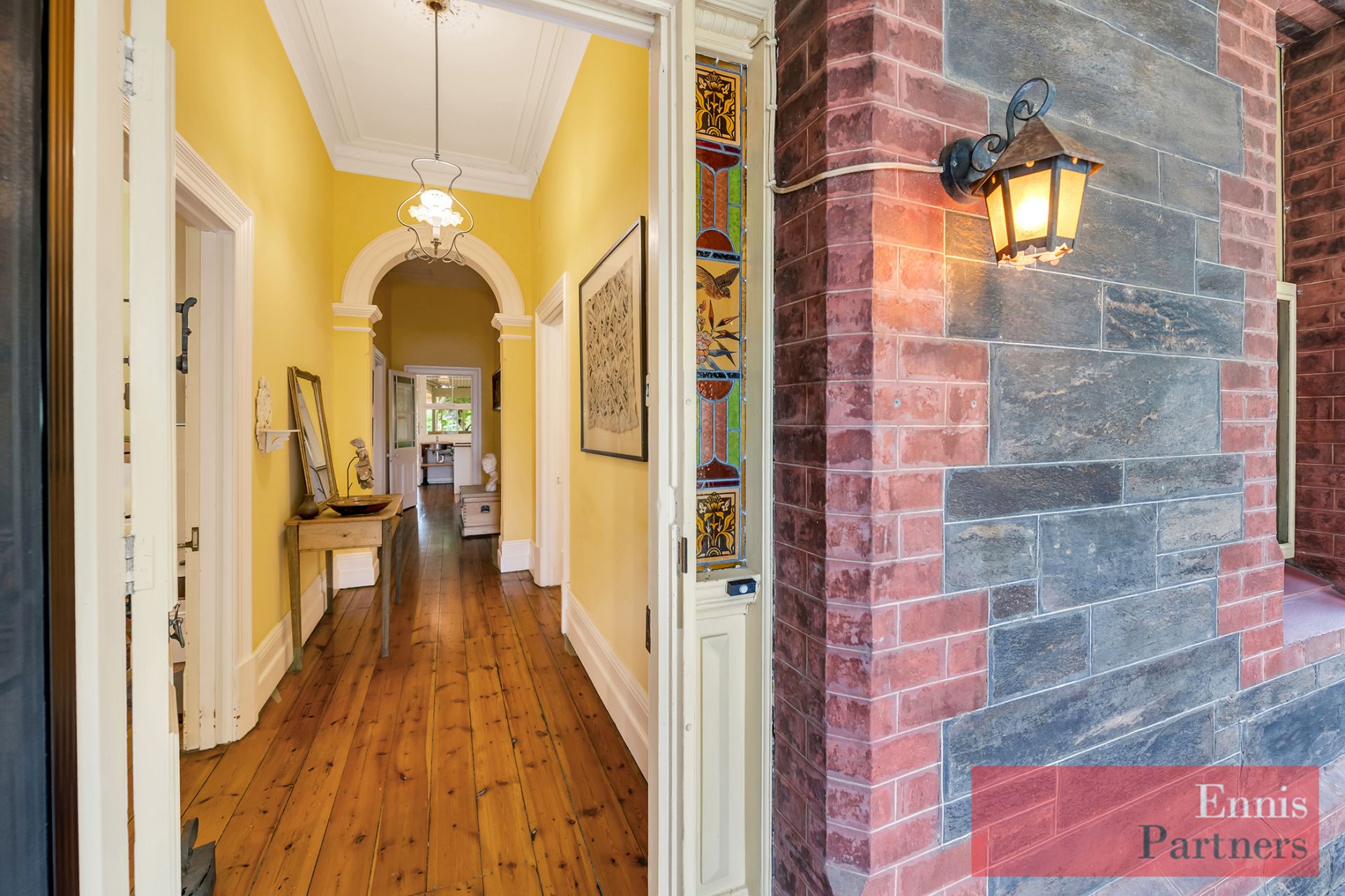 From the front to the back you will love the beautiful heritage features of the home – a tessellated tiled verandah with beautiful wrought iron lacework, stunning stained glass windows, high 3.4 metre ceilings in the front rooms, open fireplaces, baltic pine floorboards, beautiful skirting boards, cornices, and ceiling roses, brass lights, and other fine heritage detailing throughout. To the rear of the home you will love the generous vine covered verandahs, overlooking the superbly hedged and well established rear garden, with windy pathways, boxed hedging, fruit trees, and an enormous stable/barn at the back of the property.