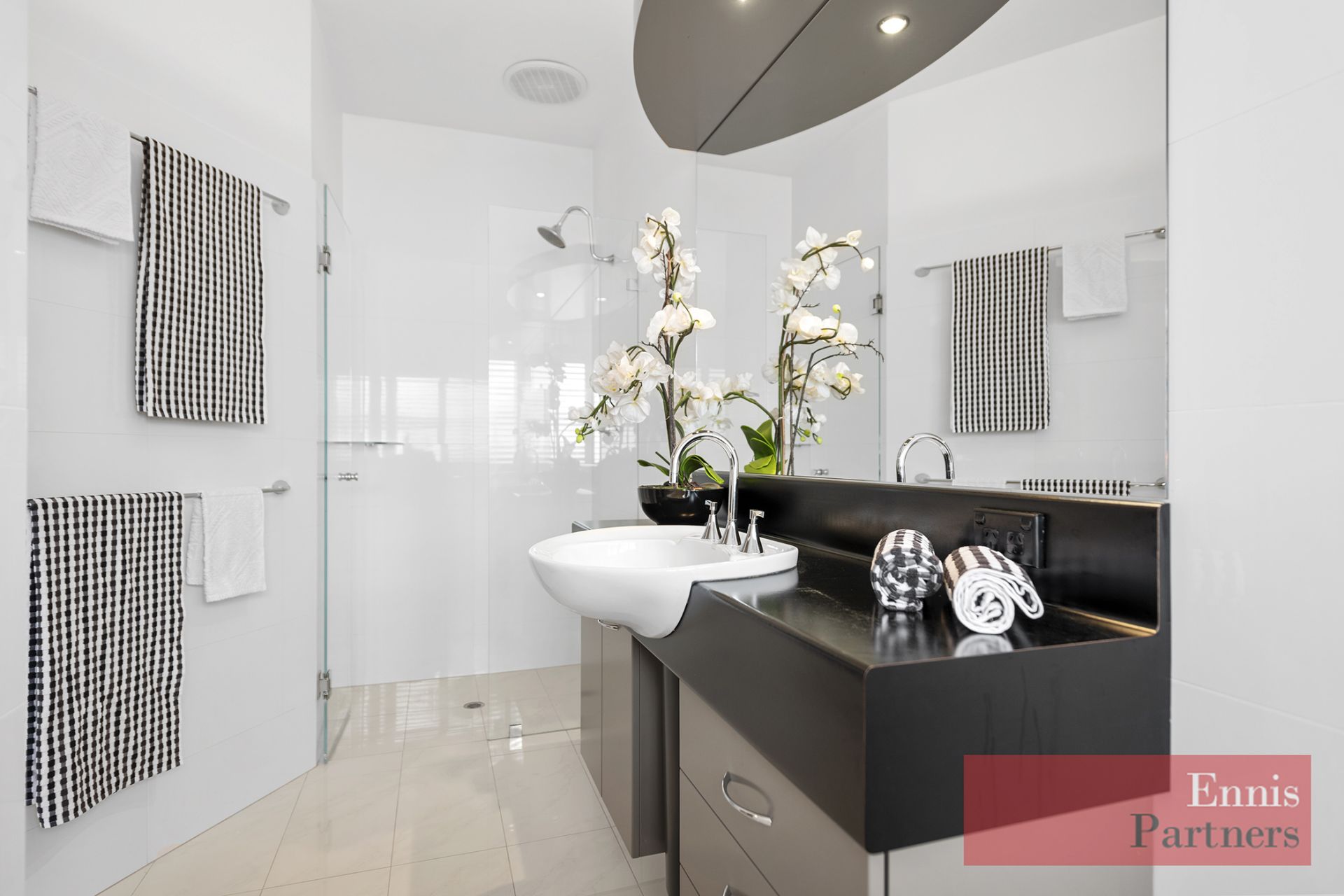 · A functional modern kitchen is perfectly positioned to an informal living and separate informal dining space