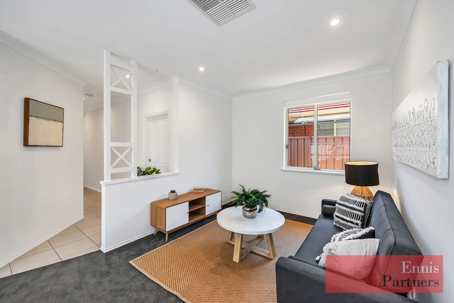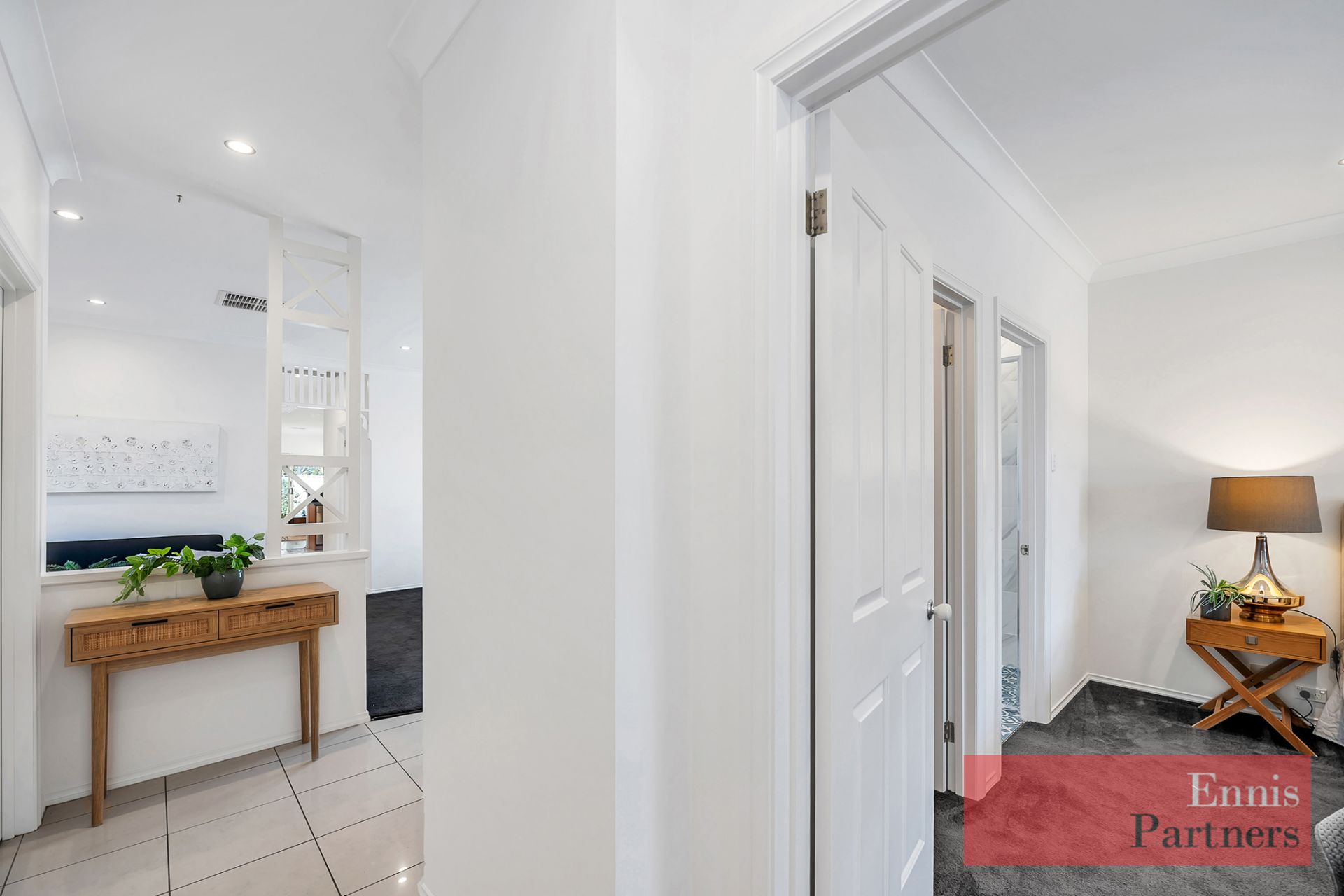 Welcoming entry hall flowing into a bright formal living space