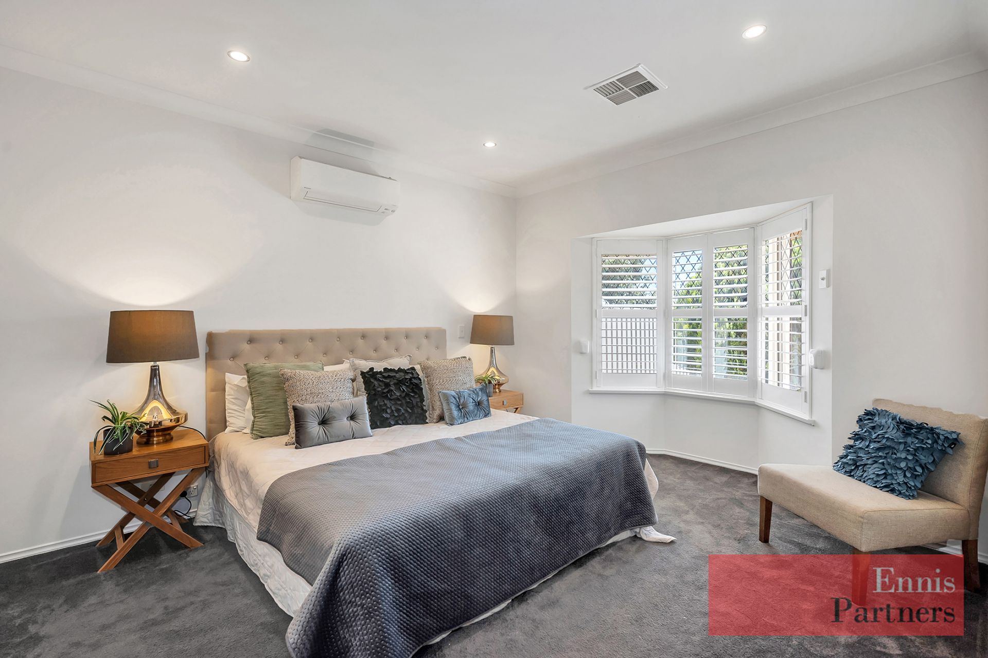 Plantation shutters in the master bedroom