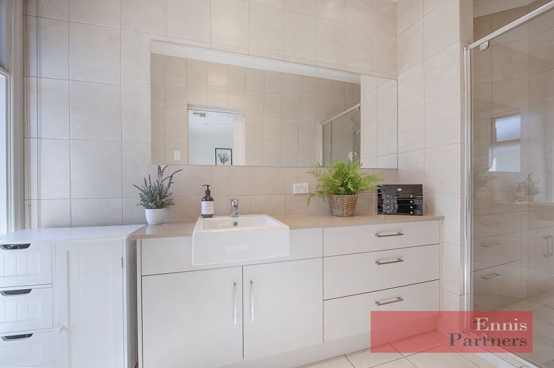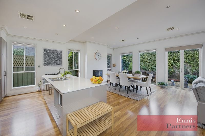 Then wander through the double doors to c2021 living! The open plan living/family room is delightful featuring 3 metre high ceilings, and opens to the delightful rear paved courtyard. Cooks will adore the “Miele” filled kitchen, complete with super bench space, and plenty of pantry and storage space. There is a downstairs “powder room”, and a laundry opening to the rear.