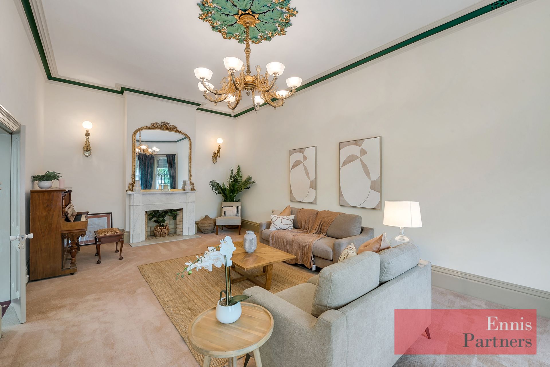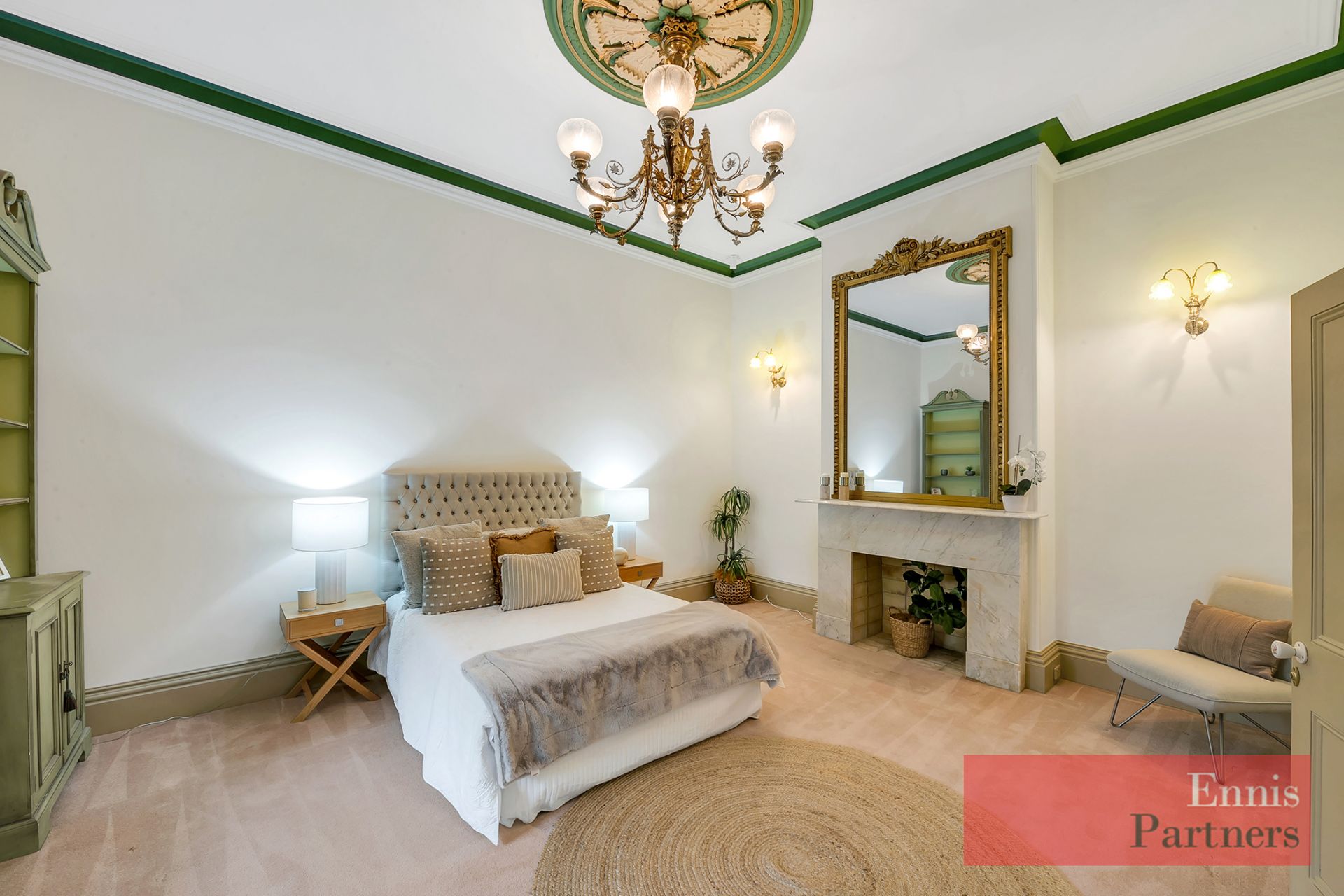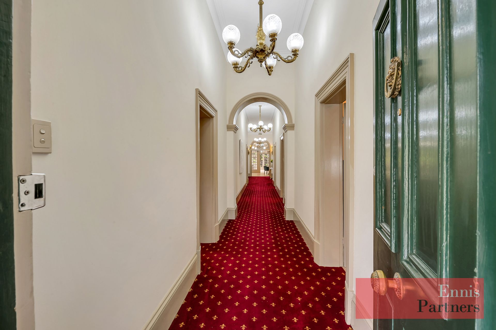 From the moment you enter the impressive 17-metre central hallway, you’ll be captivated by the home’s grandeur and warmth – featuring soaring 3.7-metre ceilings, exquisite original fireplaces, intricate plasterwork, beautiful lighting, and fine heritage detailing throughout.