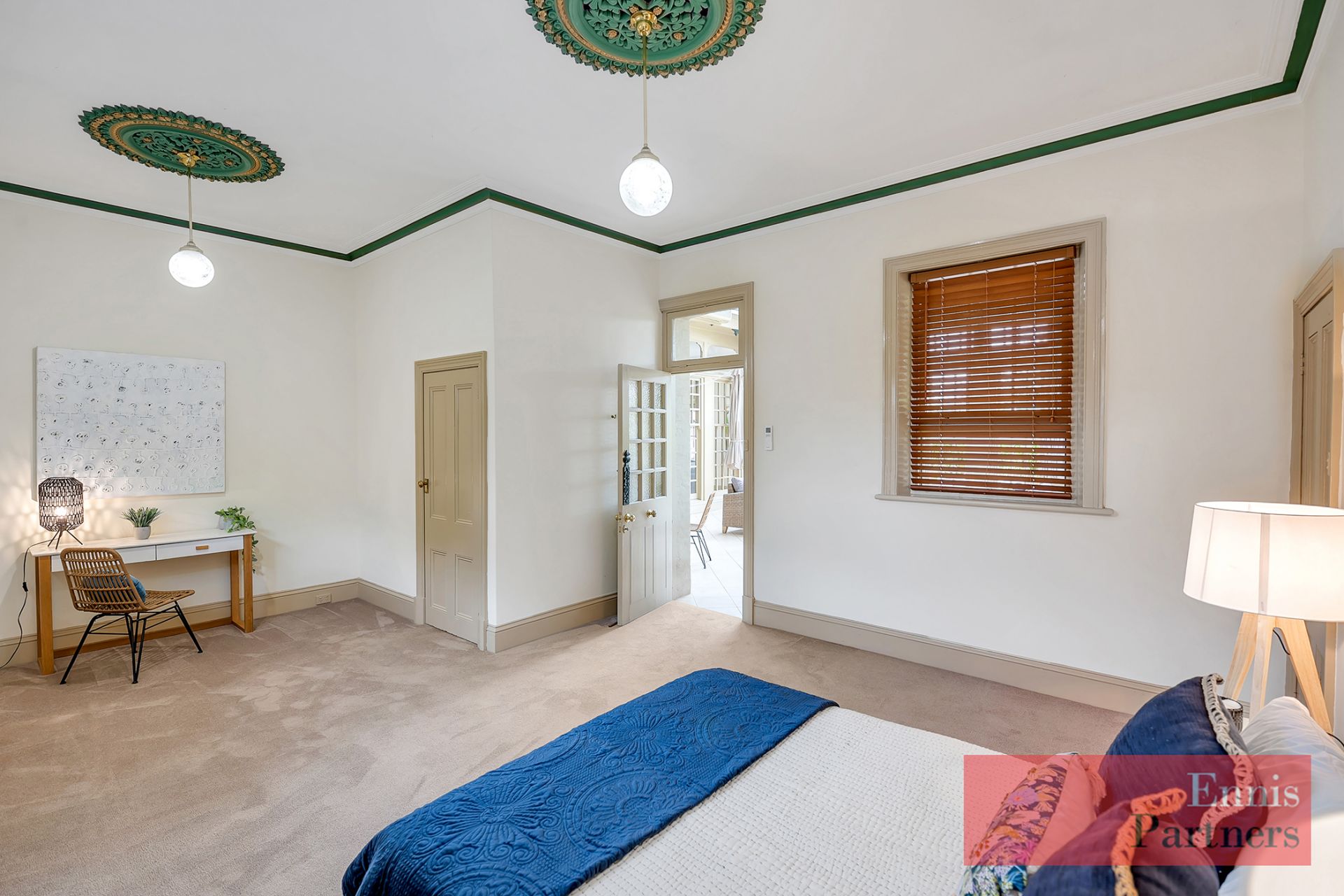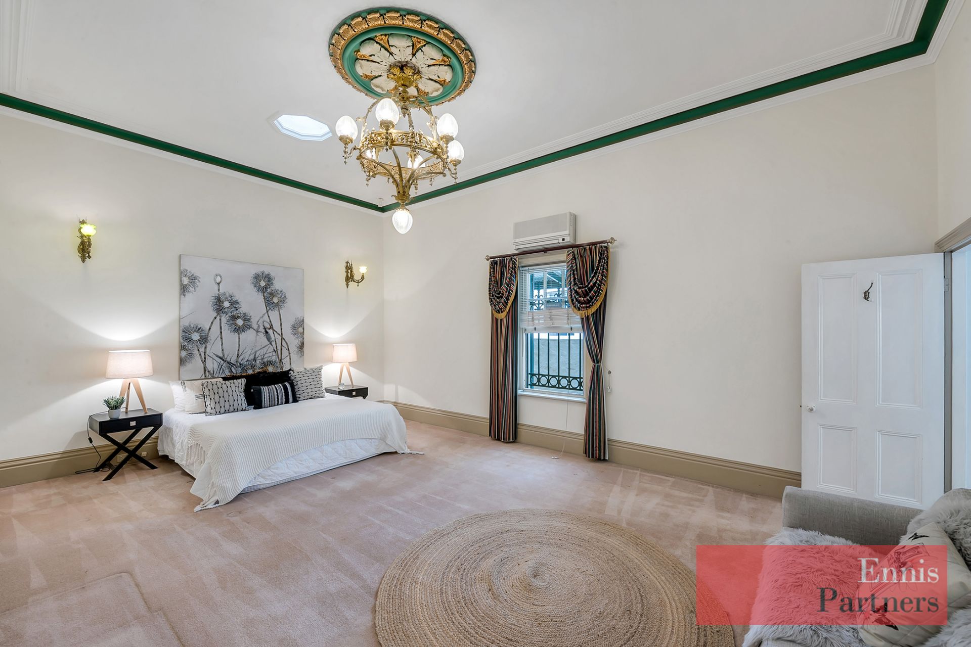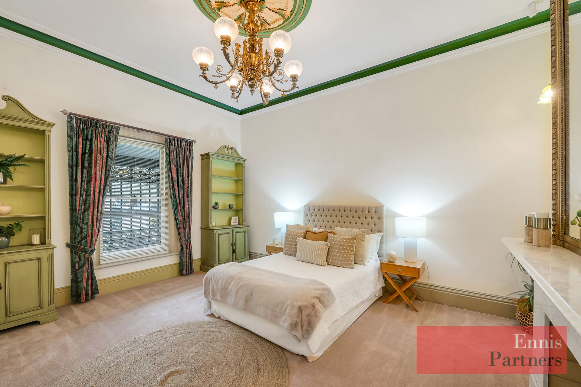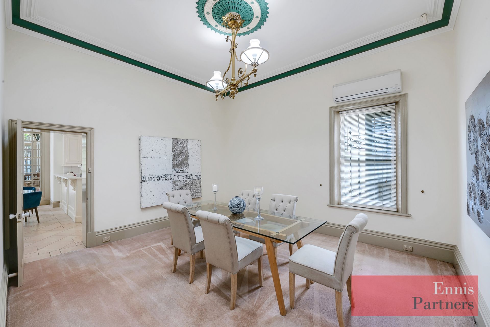 From the moment you enter the impressive 17-metre central hallway, you’ll be captivated by the home’s grandeur and warmth – featuring soaring 3.7-metre ceilings, exquisite original fireplaces, intricate plasterwork, beautiful lighting, and fine heritage detailing throughout.