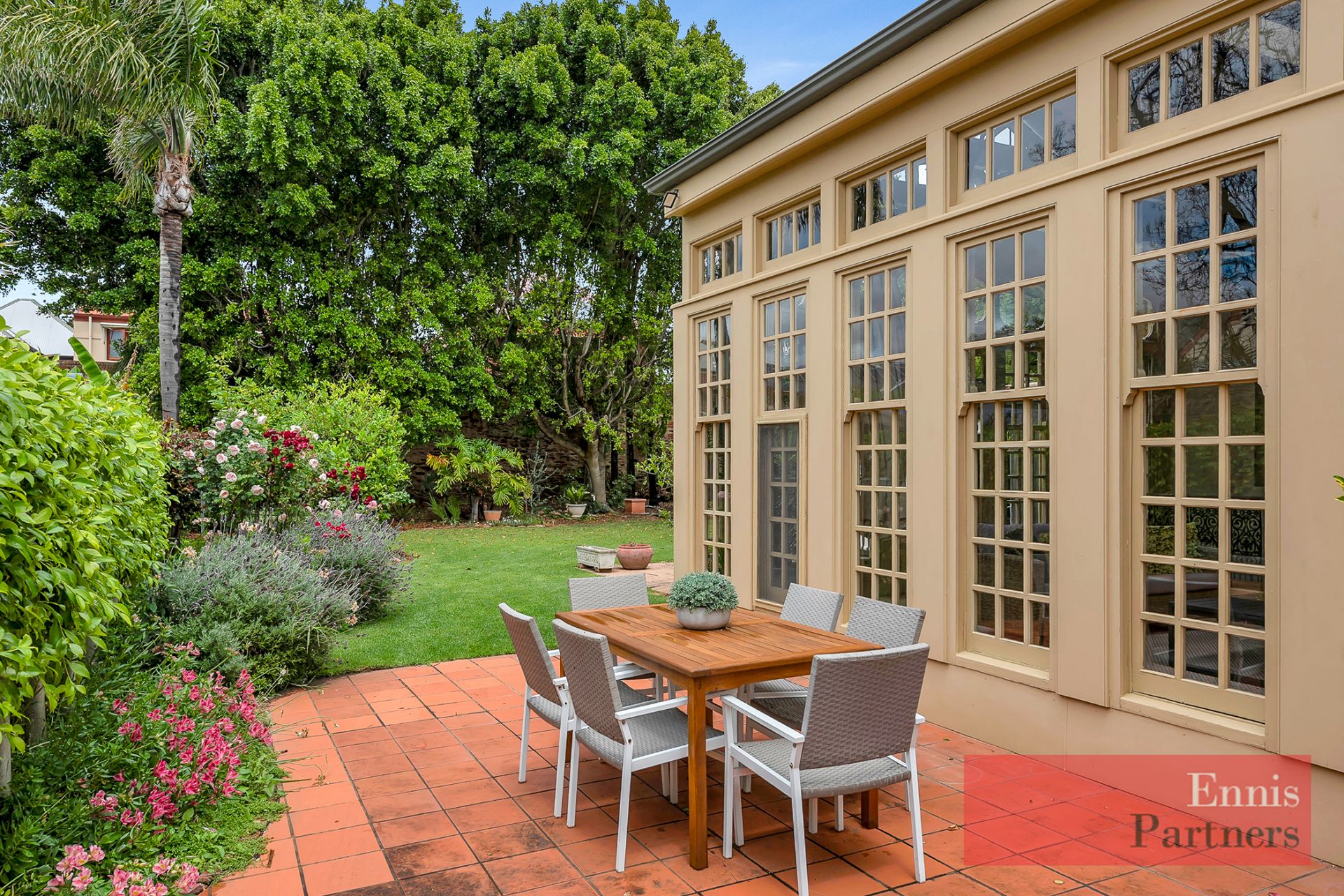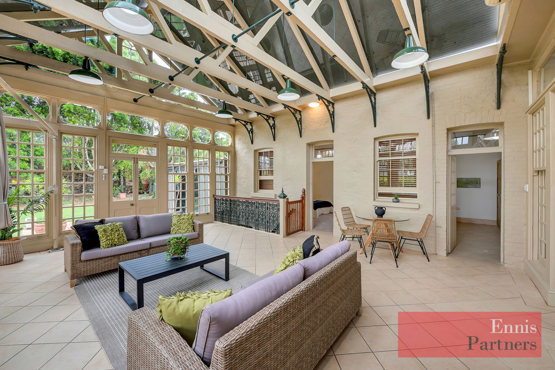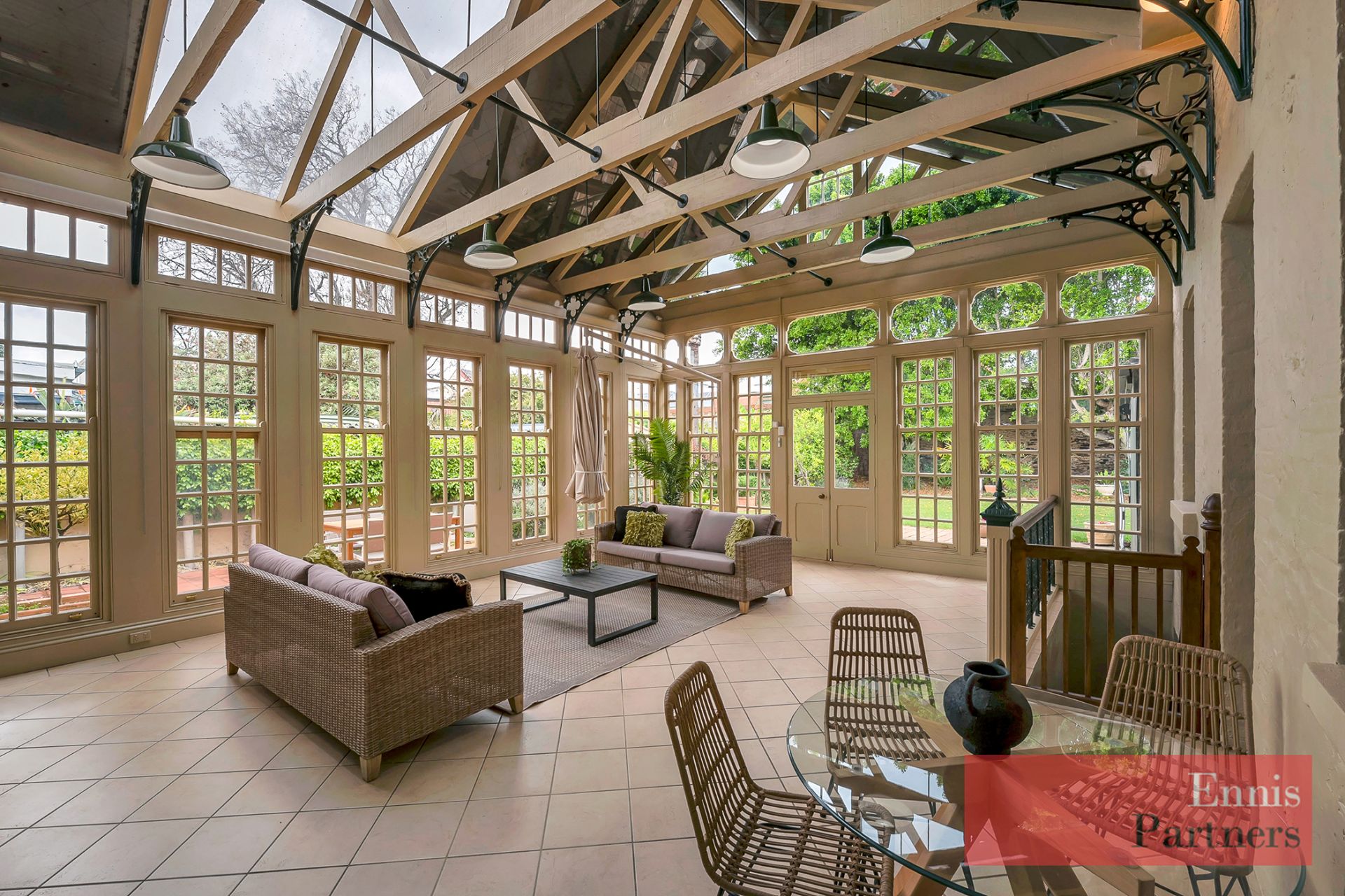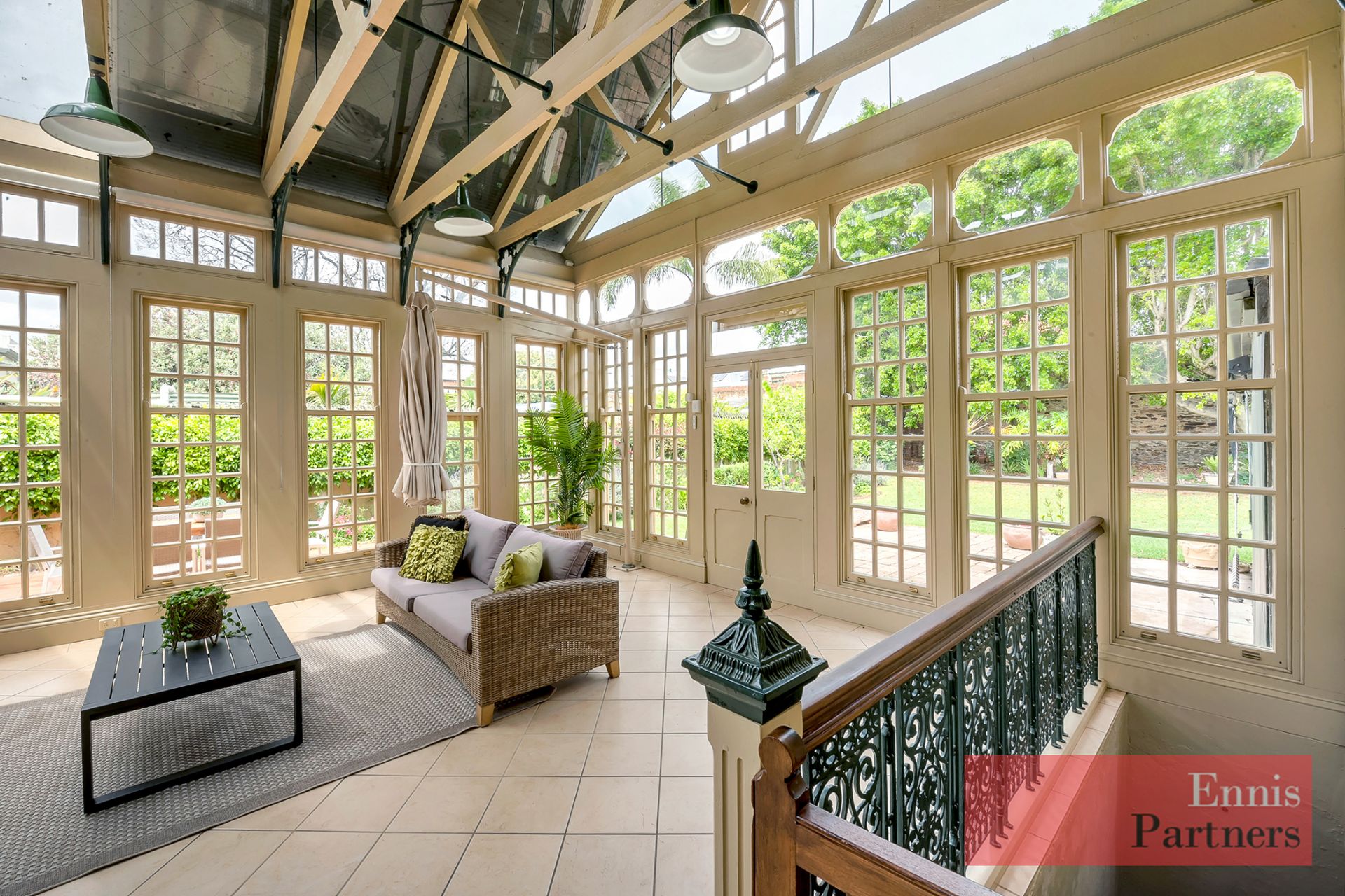 Light-filled conservatory overlooking the gardens