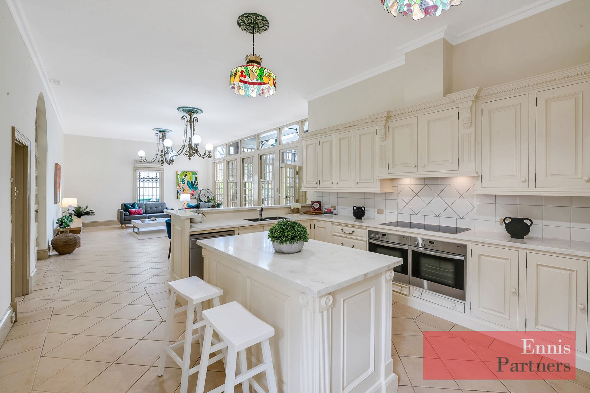 Beautifully renovated gourmet kitchen with marble benchtops and Miele appliances