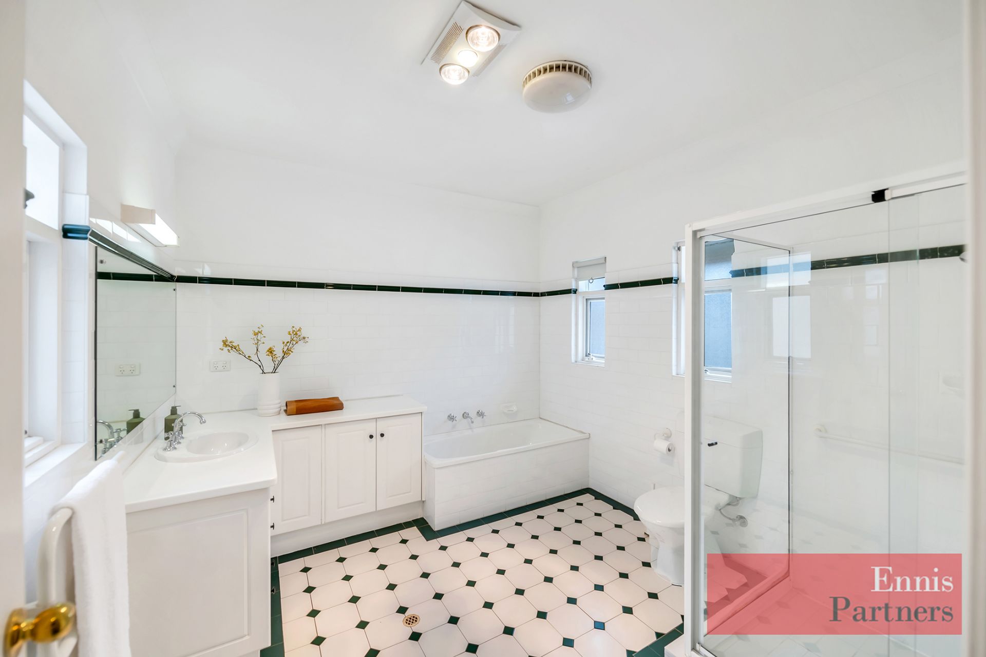 · Impressive main bathroom with full-size bath, separate shower, and quality tiling