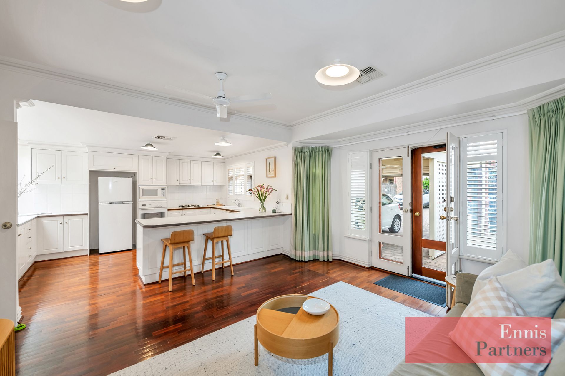 · North-facing rear living/family room with timber floors, overlooking beautifully established rear cottage garden