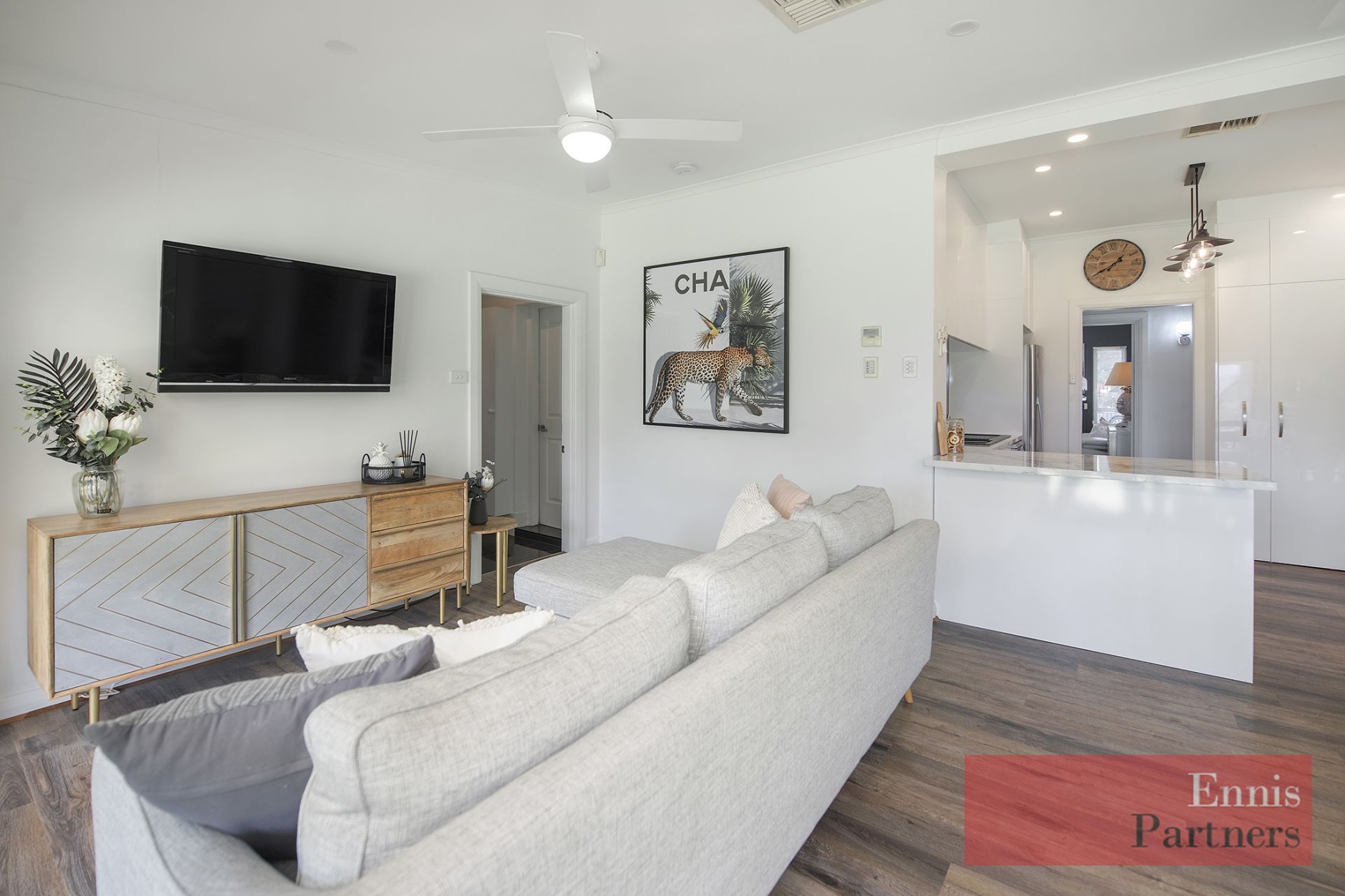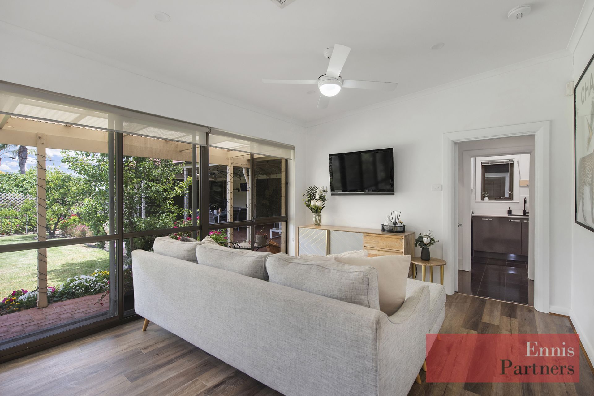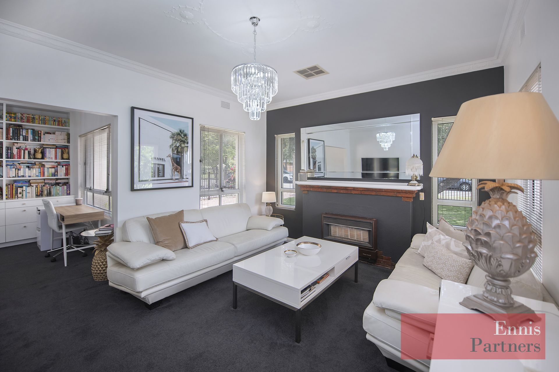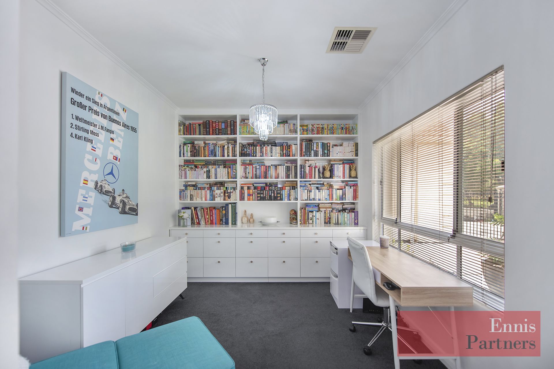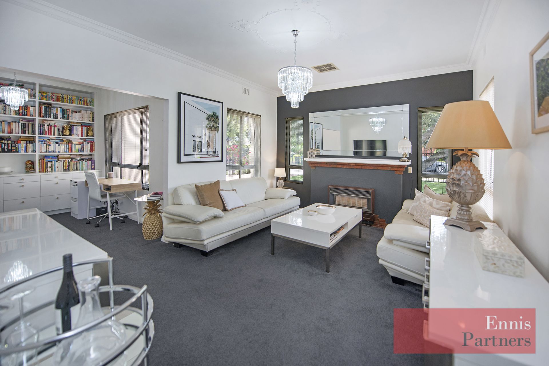 · A delightful lounge room with a beautifully fitted home office adjoining
