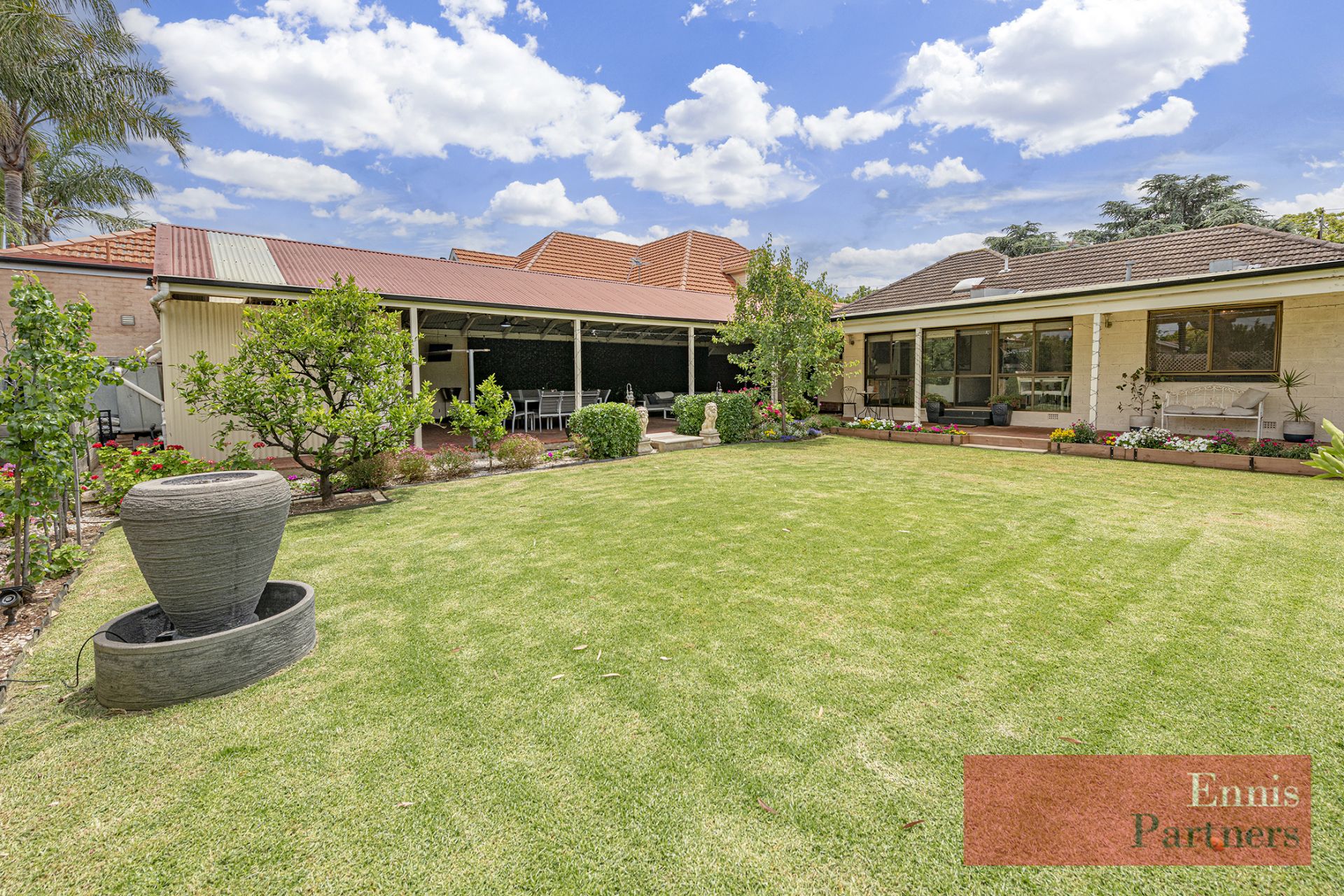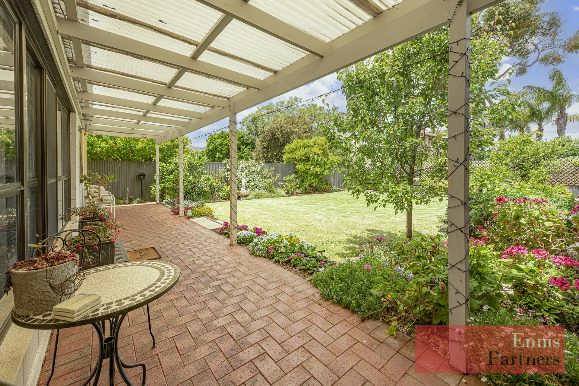The delightful well established and immaculate easy-care garden offers both a place for solace, and space for family fun – plenty of room for backyard cricket and kicking the football! You will find lemon, cumquat, and orange trees, plus plenty of room to plant your annuals and herbs! A superb “old fashioned” back yard to really enjoy.
