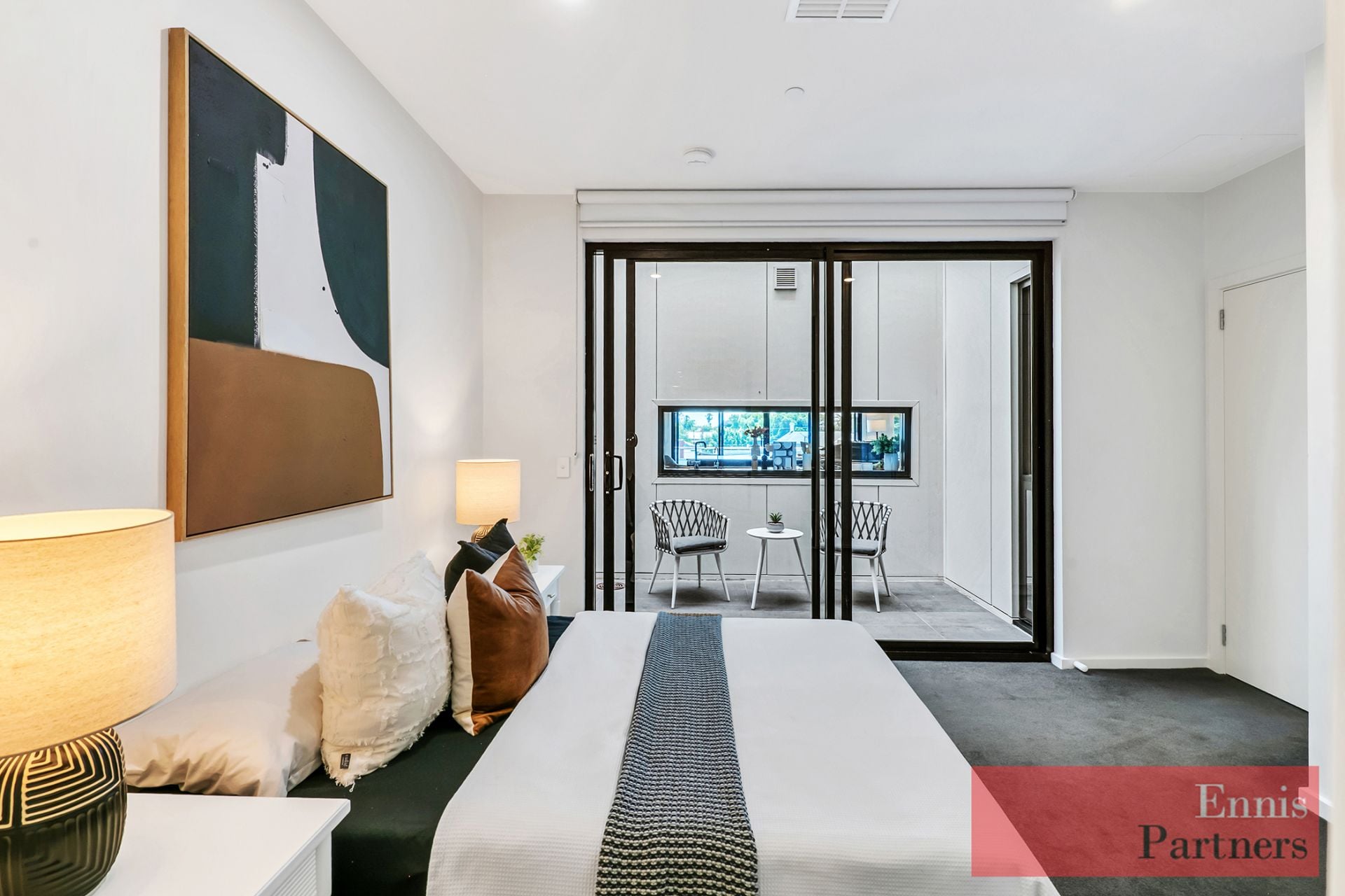 Master bedroom with en-suite bathroom and direct sliding door access to the internal courtyard.